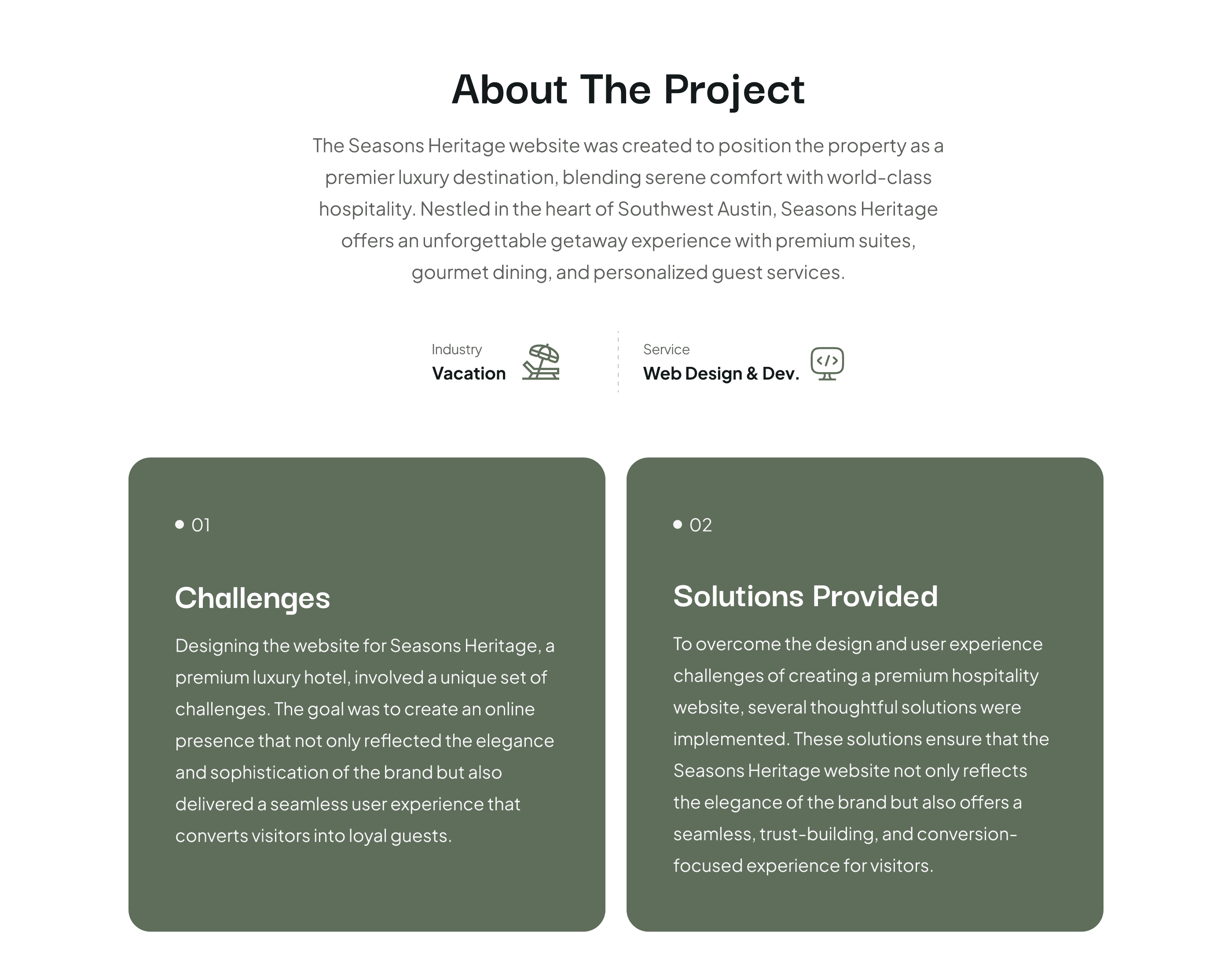 Seasons Heritage vacation Rental Website Design